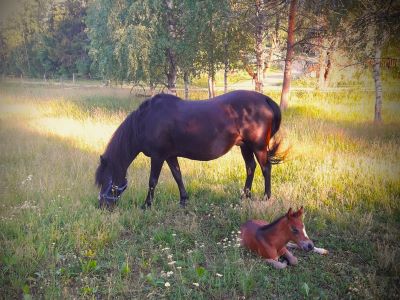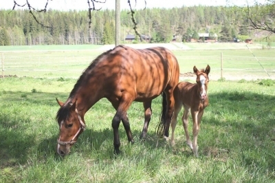 Vekki varsoi toukokuussa 2010 tammavarsan oriista Ellilän Bramble Coctail.